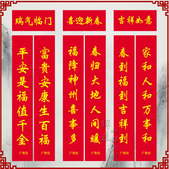 公司主要產品:廣告春聯、定做春聯、定制春聯、禮品春聯、高檔廣告春聯制作.促銷廣告春聯等,我們的服務宗旨:信譽比承諾好、質量比價格高。我公司是菏澤專業的春聯印刷廠和對聯印刷廠。是專業生產和設計對聯,年畫春聯印刷廠、春聯印刷廠、對聯印刷廠、春聯印刷廠、定做春聯廠家、對聯生產廠家、對聯廠、春聯廠。